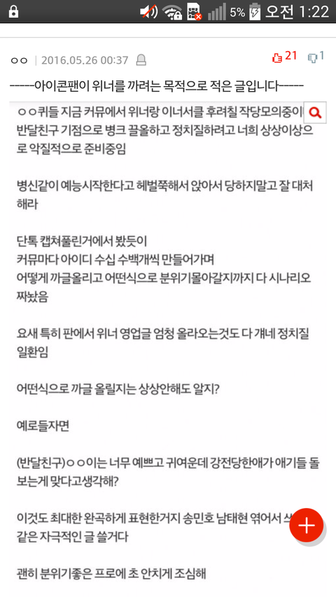 위너 까이는 글 올라올 때 이런 댓글 어떻게 생각해..?