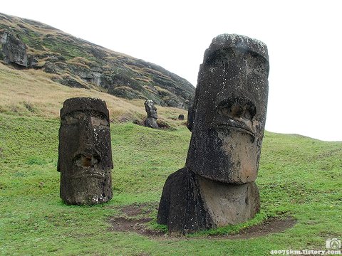 무수하게 많은 모아이들이 운반되지 못하고 산 중턱에 묻혀있는 곳이지요.