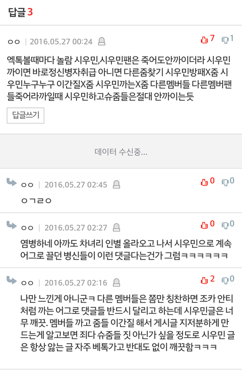 백현글에는 어그로 1도없이 댓글 20개 이상씩 막 달림