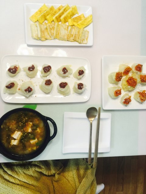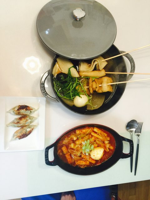 육수내서 만든 어묵탕에 떡볶이 그리고 이건 냉동군만두ㅋㅋㅋ