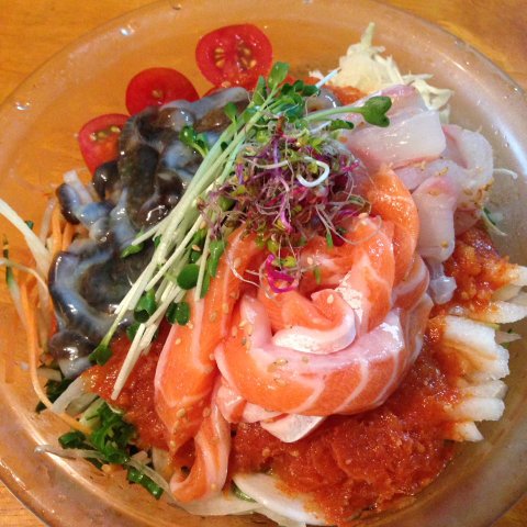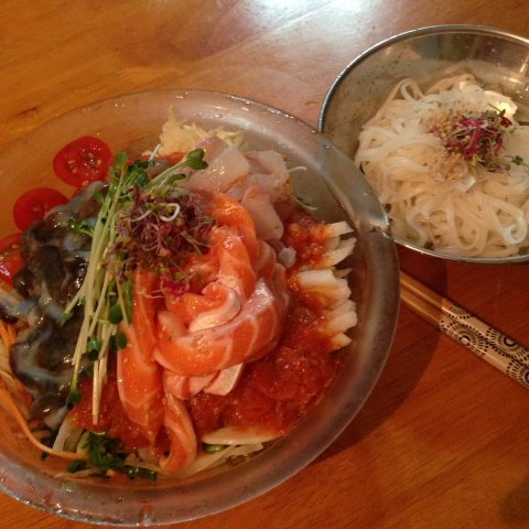 개인적으론 연어를 넣길 잘했단 생각이 들어요. 소면 사리는 필수!