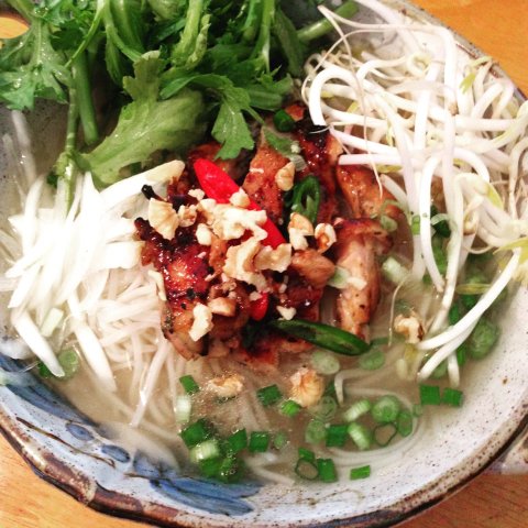 닭고기 구운걸 고명으로 올린 쌀국수에요.