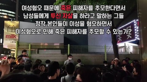 특히 강남역 10번 출구에서의 남성혐오 발언은... 이성이 아닌 집단 광기의 영역이었죠.