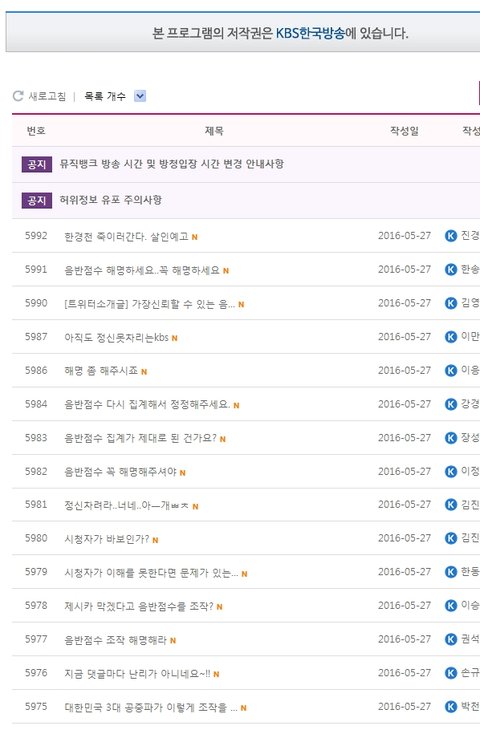 3회 AOA 점수조작 난리난 뮤뱅게시판