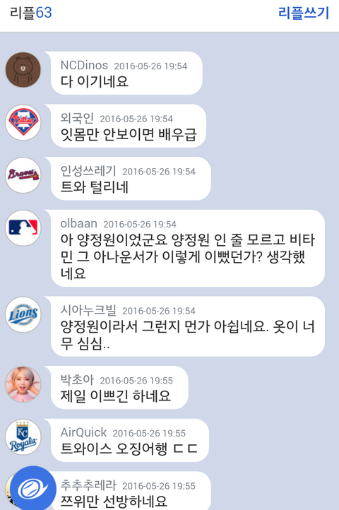 니가 그부분만 가져온거겠지 오히려 양정원 여적여 지린다고 욕하는애들 조카 많았는데