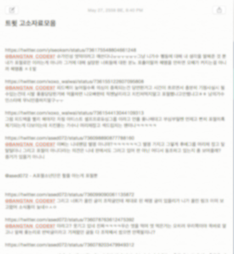 캡쳐는 힘들어서 일일히는 못하고 간혹 심한것만 하고있고 메모장에 링크들 계속 추가하고있어! 이거 맞는거야?ㅎ 입덕이후로 이런일은 처음이여서ㅋㅋㅋㅋ
