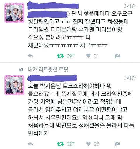 시우민) 박지윤아나운서가 크라임씬에서 오구오구받은거 언급해주셨대ㅋㅋㅋ