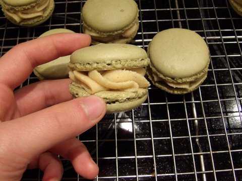 꼬끄에 녹차가루도 듬뿍!넣고 버터크림에 미숫가루를 듬뿍!넣은 마카롱!