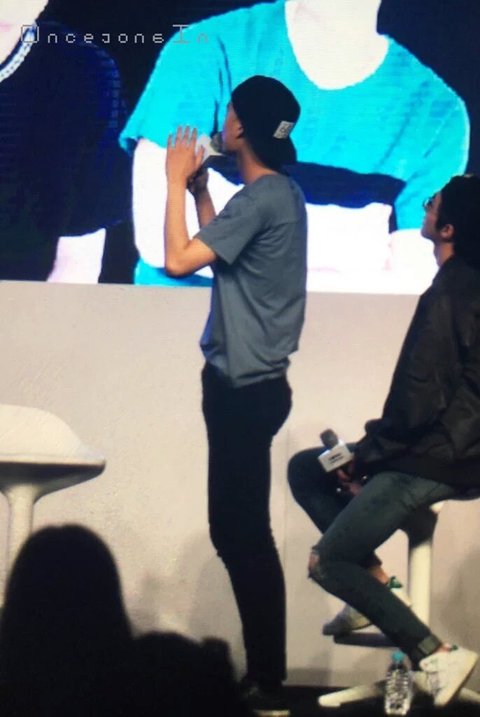 종인이 팬분께 모자 씌워준다