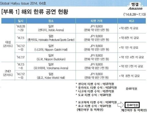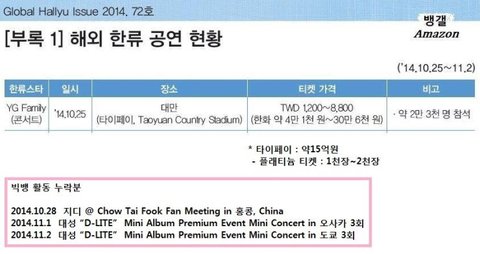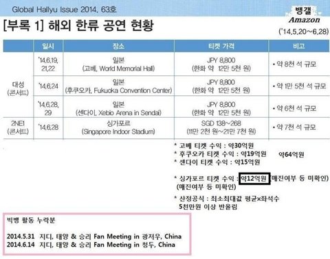 2.대성의 일본 투어는 와이지가 진행한게 아니라 빅뱅 일본소속사인 에벡이란곳.