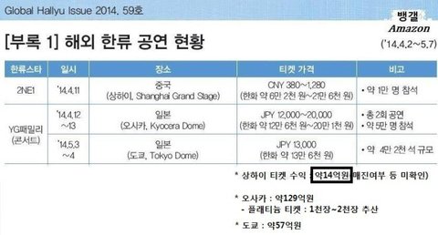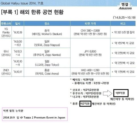 5.빅뱅이 뺑뺑이투어로 돈벌어오면 타가수에게 엄청나게 투자.