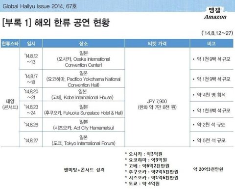 (일본 외 다른 해외콘서트와 팬미팅을 제외한 수치임)