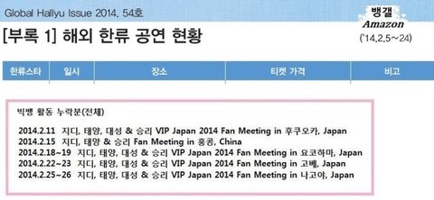 24.2014~2015년도 돔투어 신인 남그룹 오프닝하게 하고 그 후에도 빅뱅 해외 콘서트에 후배 부스를 차리고 앨범 등을 홍보 및 판매 함