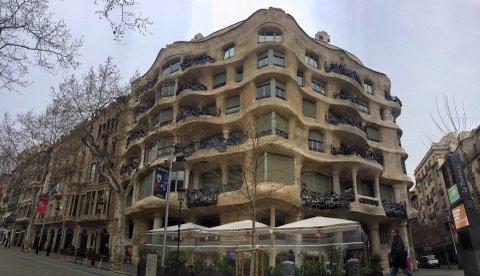 두번째 목적지는 "카사밀라" 밀라라는 의뢰인의 이름을 따서 가우디가 제작한 건물로, 건물이 곡선으로 이루어져있는것과 테라스에 있는 독특한 난간이 특징이라고 해요.