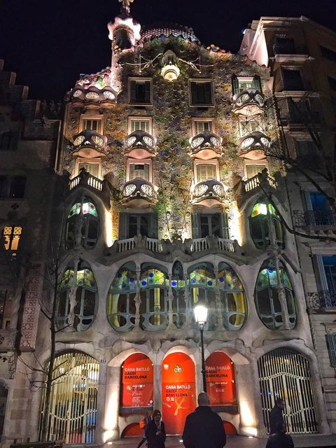 세번째 목적지는 "카사바요트"에요. 이 건물 역시 가우디의 건축물로, 바다와 동물의 뼈를 모티브로 해서 만들었다고 해요. 겉모습만 봐도 아름다움에 눈이 사로잡혔어요. (야경이 정말 이뻐요)