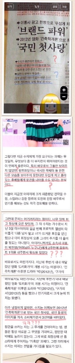 이젠 수지 언급 없이 혼자서는 주목을 못 받나? 하는 생각 밖에 안듦