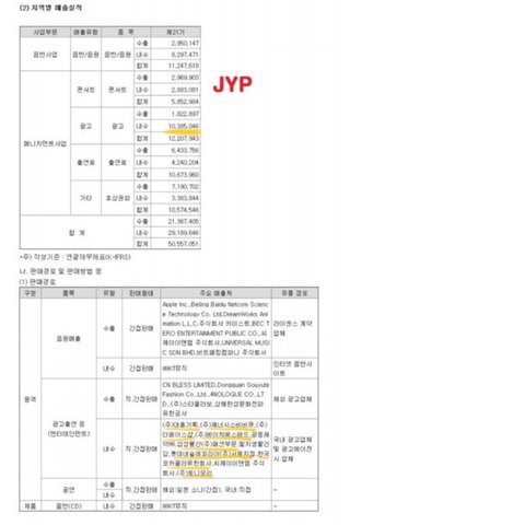 그에 비해 국내 광고 수입 100억이 넘는 JYP.