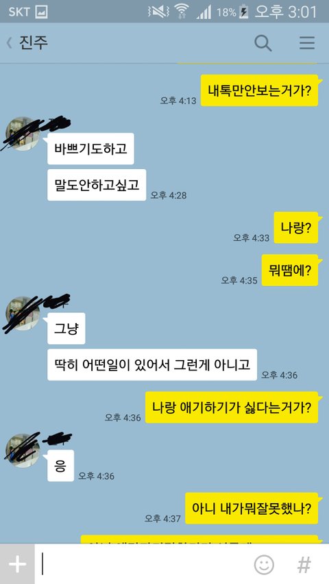 마지막으로 나만날때연락했던 남자라고 물으니 대답을 안하는거였습니다...나랑 애기하기가 싫다더군요