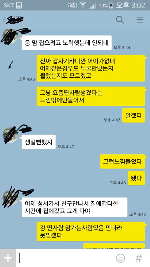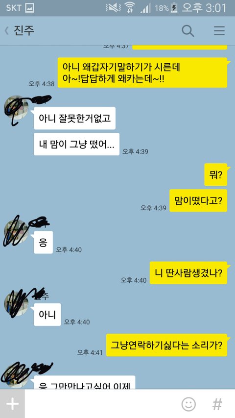 그때 진짜눈이 너무돌아서 나만날때 다른사람이랑 연락했다는 뜻이네? 라며...윽박지르고 화까지냈습니다.