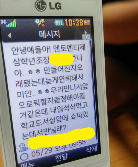 ㅎㅇ 나는 수능 170여일 남은 고3임 일단 대한민국의 모든 수험생들 힘내!! 불과 몇 시간 전 나와 내 친구는 정말 당황스러운 일을 겪었어... (참고로 나는 기숙사생이야! 내 친구도! 지금도 같이 있음ㅋㅋㅋㅋ) 우리학교에서 멘토멘티제라는 프로그램을 운영하는데 내 친구가 조장이라서 조원애들한테 문자를 돌렸지... 사건의 발단은 이거였어... 뜻밖의 답장을 받았거든ㅋㅋㅋㅋㅋㅋㅋㅋㅋ 나랑 그 친구랑 내 방(기숙사방)에서 같이 떠들고 있는데 갑자기 그 친구 폰으로 진동이 막 울리는거야ㅋㅋㅋㅋㅋㅋㅋㅋㅋㅋ 그래서 친구가 확인했는데