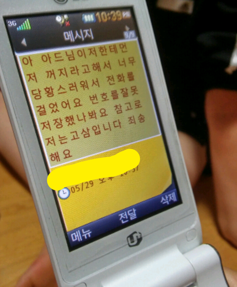 (번호는 지웠어!!!!) 그래서 내 친구가 너무 당황해서 전화를 걸었는데 어떤 저음의 남성분이 전화를 받으셨음..... 알고보니 아버지시더라고....ㅎ 예상치 못한 전개에 내 친구는 너무 당황해서 상황 설명도 못하고 죄송하다고 하고 바로 끊었어 근데 전화를 끊고 생각하니까 그래도 상황설명은 해야될 것 같은거야ㅋㅋㅋㅋㅋ 그래서 문자를 다시 보냈어