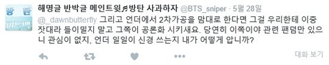 해명을 바라기보다 단순히 씹을 안주거리를 위해 방탄소년단을 제단 위에 올리고 잘 알지도 못하면서 표절이라며 손가락질 했던 그대들은 반성할 필요가 있을 것 같다