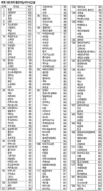 사실이야 "평균" 아이큐는 확실히 한국인이 세계 원탑 수준이지