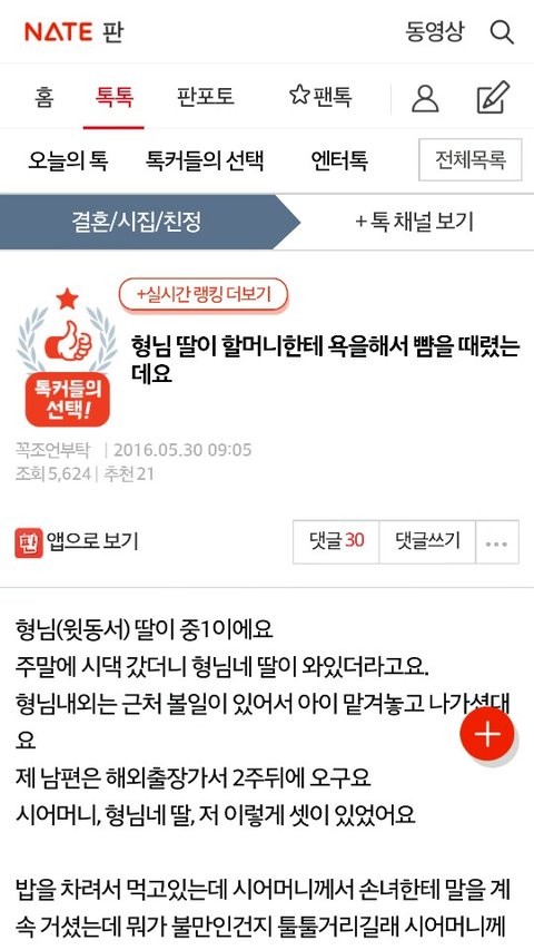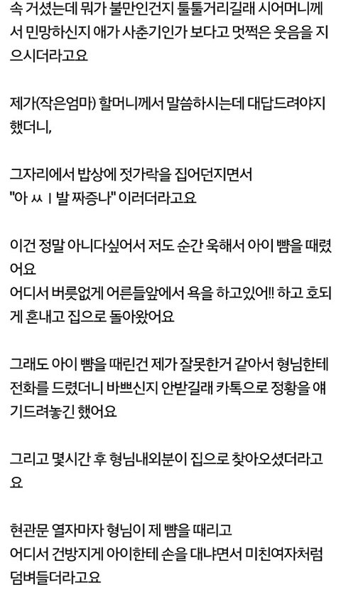 [원본지키미]형님 딸이 할머니한테 욕을 해서 뺨을 때렸는데요