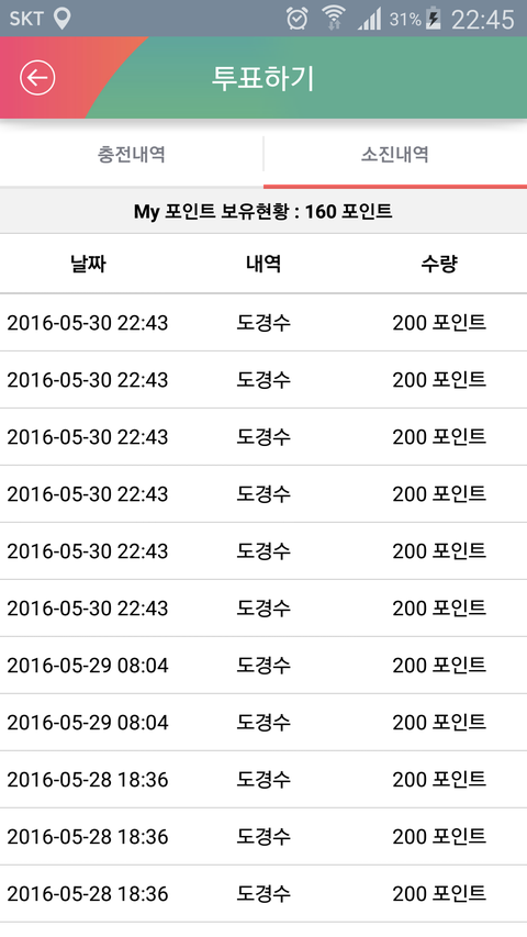 어제는 일요일이라 그런 건가 포인트를 주지 않아 두 번 밖에 투표를 못 했다ㅠ