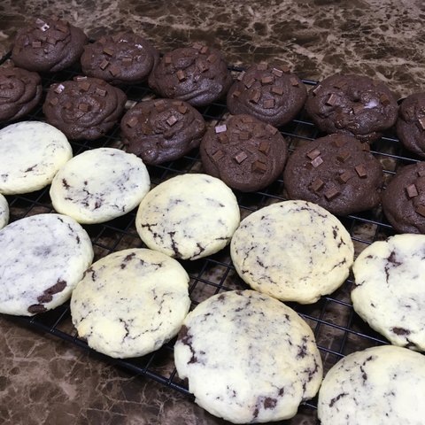 ' 초코칩 쿠키 ' '부라우니 쿠키 ' 초코칩 쿠키 브라우니 쿠키는 속이 촉촉해서 정말 제가 좋아하는 쿠키예요 저는 쿠키 딱딱한거 싫어해서 쿠키만들때 좀 덜구워요 !