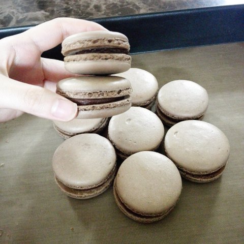 ' 초코 마카롱 ' 한 .. 두달전에 제가 맨날 마카롱만 만들었을때 만든거예요 ! 필링은 가나슈로 필링 했어요 ㅎ 쫀득한