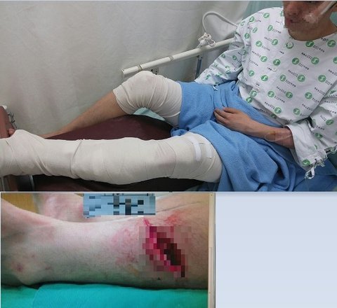 부상이 너무 심해 하반신 마취 후 봉합수술 했음