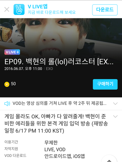 백현의 V앱 lol러코스터 ㅋㅋㅋ