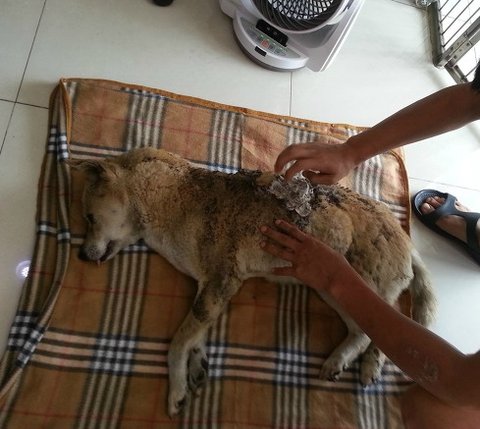 ... 불타고 있던 이불과 .. 스티로폼판넬의 스티로폼이.. 그대로 몸에 붙어.. 녹여진채로..