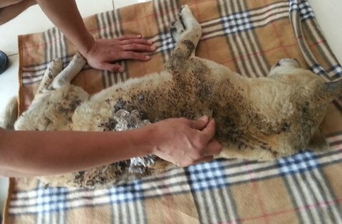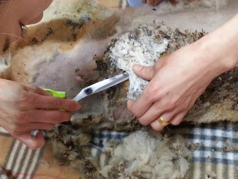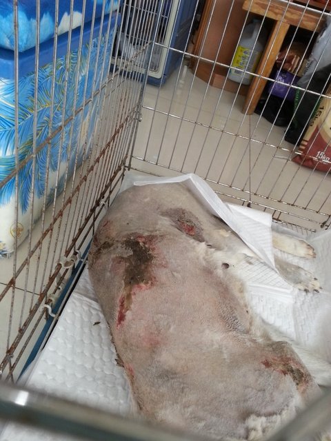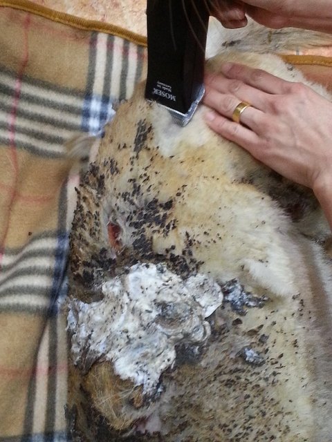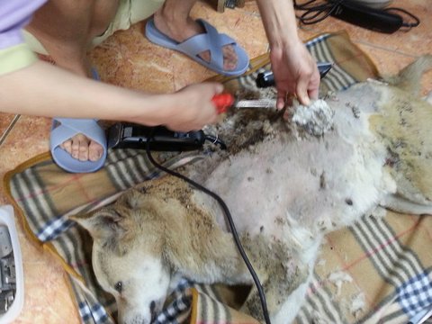 병원에서 일단 털을 다 밀어보도록 하는데..