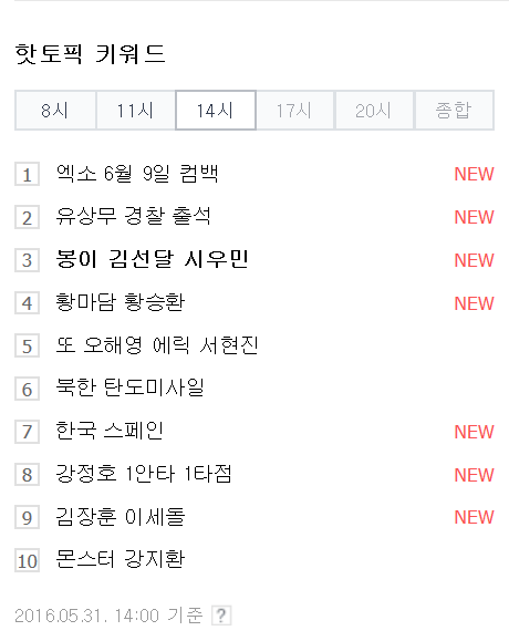 민석이 초록창 핫토픽 키워드에 올랐어 1위는 엑소 컴백!!!!!