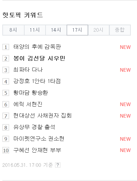 대박 >.< 5시 핫토픽 키워드에도 들었는데 순위가 더 올라갔어!!!!