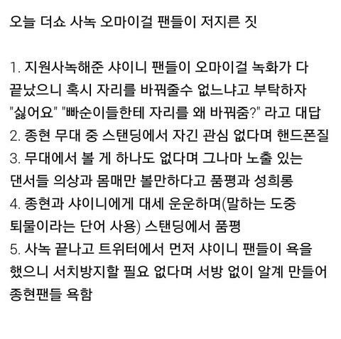 무개념 옴걸 팬 지 가수 얼굴에 먹칠하지말길