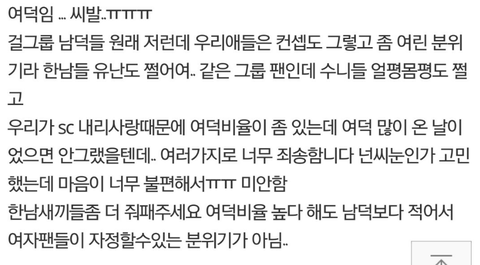 옴걸 여덕이 올린 글이래 옴걸 남팬들은 지네가 뭔데 여덕들 몸매 평가하고 ㅈㄹ