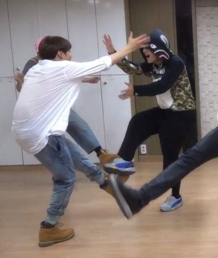 ㅋㅋㅋㅋㅋㅋㅋㅋㅋㅋㅋㅋㅋㅋㅋㅋ석진이 다리시강에 쩔어서 못봤었는데 다시보니까 둘이서 마주보면서 아재댄스춤ㅋㅋㅋㅋ