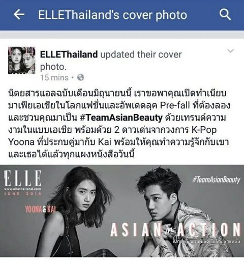 종인이가 유나선배님과 찍었던 화보가 태국 엘르 6월호 커버로 선정되었어