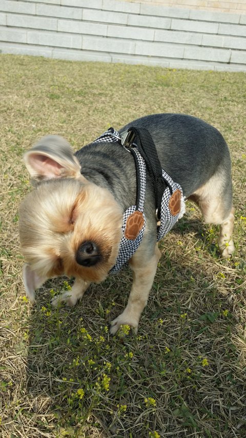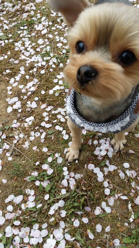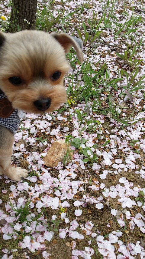 산책나왔는데벚꽃이이쁘게떨어져있길래 방자는사진찍으려고하면움직여서사진찍기가너무힘들어요ㅠ