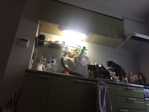 요즘 주방에 달린 형광등 끈을 잡아 당기는 데 맛이 들려서..
