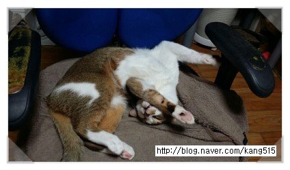 똥* 냄새 맡고 자는 콩냥이...