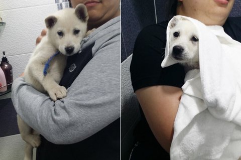 엄마 품에서 한창 배워야할 시기에 엄마와 떨어져 산모견의 동냥젖을 먹으며