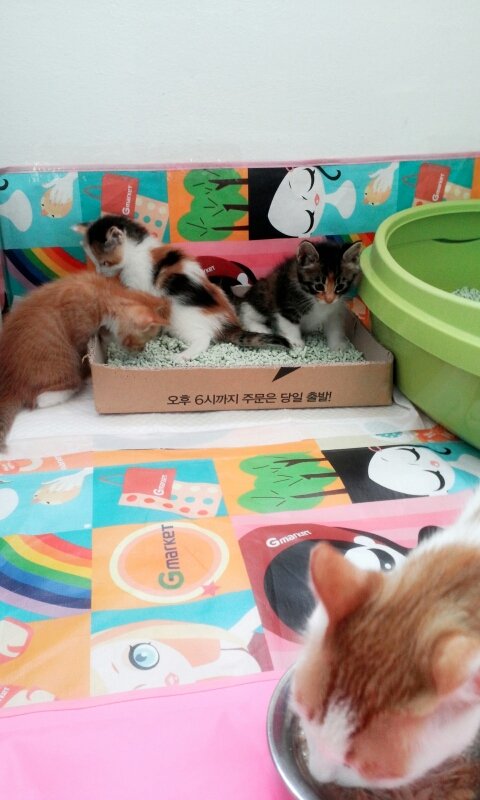 위사진은 우리아깽이들 30일째되는날 화장실 모래훈련 적응한날이에요 ^^