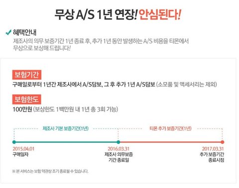 그래서 알아봤는데 이번에 티몬 무상 1년 a/s 연장 이벤트를 한다고해요.