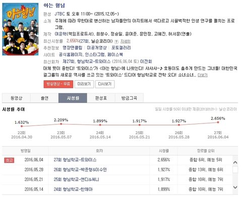 아는형님 최고시청률 2.656% 경신