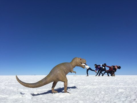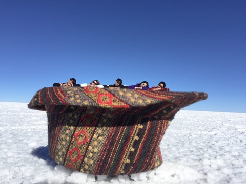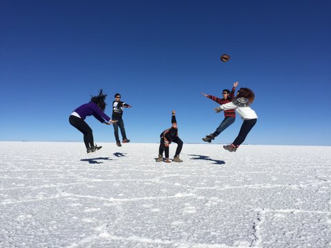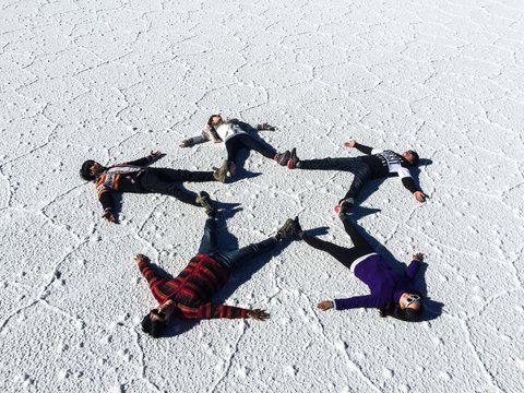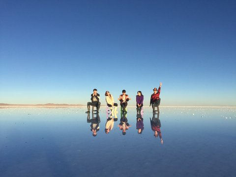 사진에 나온 친구들은 페루부터 함께한 개인 여행자들이에요. 미국, 캐나다에서 교환학생이나 워홀을 마치고 여행을 하는 친구들이 버스에서, 공항에서, 호스텔에서 우연히 만나 이곳 우유니까지 함께 여행하고 있어요.마음이 서로 잘 맞는 덕분에 한달째 함께 여행하고 있어요.