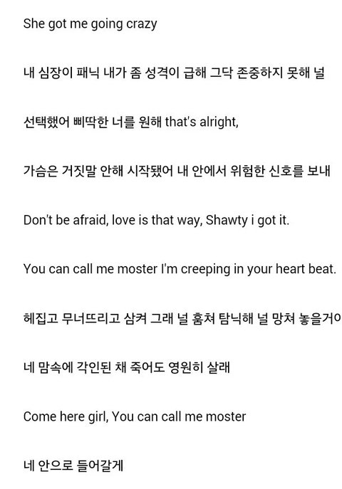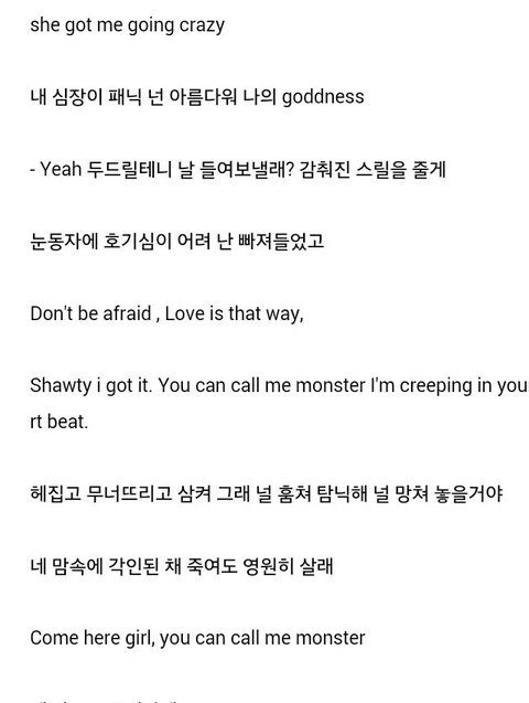 야 미친 누가 앨범사양에서 몬스터 가사 읽은거 써줌